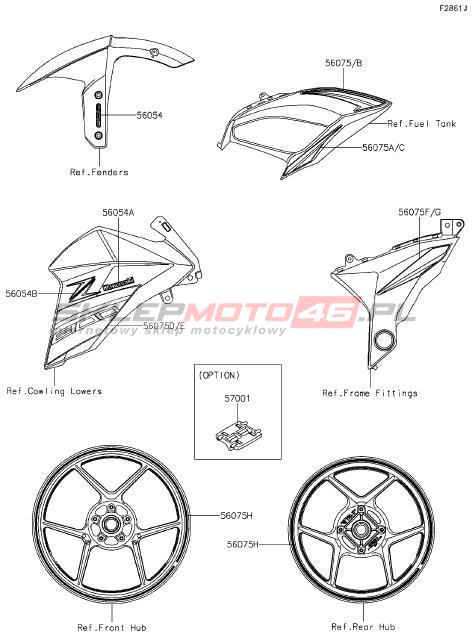 Wszystkie części widoczne na fiszkach to oryginalne części OEM Kawasaki. Możesz złożyć zamówienie telefonicznie, dzwoniąc pod numer +48 512-024-444, lub poprzez nasz sklep internetowy. Dostępność wybranych części zostanie automatycznie sprawdzona po dodaniu ich do koszyka.