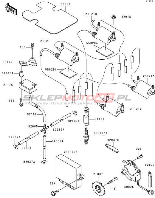 Wszystkie części widoczne na fiszkach to oryginalne części OEM Kawasaki. Możesz złożyć zamówienie telefonicznie, dzwoniąc pod numer +48 512-024-444, lub poprzez nasz sklep internetowy. Dostępność wybranych części zostanie automatycznie sprawdzona po dodaniu ich do koszyka.