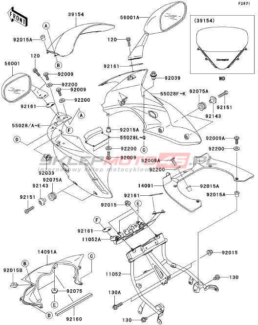 Wszystkie części widoczne na fiszkach to oryginalne części OEM Kawasaki. Możesz złożyć zamówienie telefonicznie, dzwoniąc pod numer +48 512-024-444, lub poprzez nasz sklep internetowy. Dostępność wybranych części zostanie automatycznie sprawdzona po dodaniu ich do koszyka.