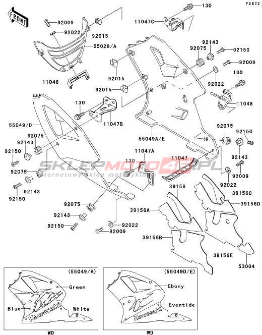 Wszystkie części widoczne na fiszkach to oryginalne części OEM Kawasaki. Możesz złożyć zamówienie telefonicznie, dzwoniąc pod numer +48 512-024-444, lub poprzez nasz sklep internetowy. Dostępność wybranych części zostanie automatycznie sprawdzona po dodaniu ich do koszyka.