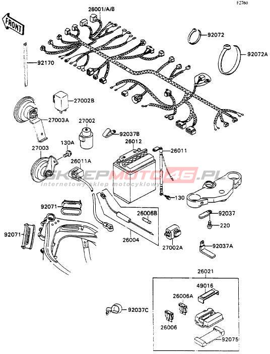 Wszystkie części widoczne na fiszkach to oryginalne części OEM Kawasaki. Możesz złożyć zamówienie telefonicznie, dzwoniąc pod numer +48 512-024-444, lub poprzez nasz sklep internetowy. Dostępność wybranych części zostanie automatycznie sprawdzona po dodaniu ich do koszyka.