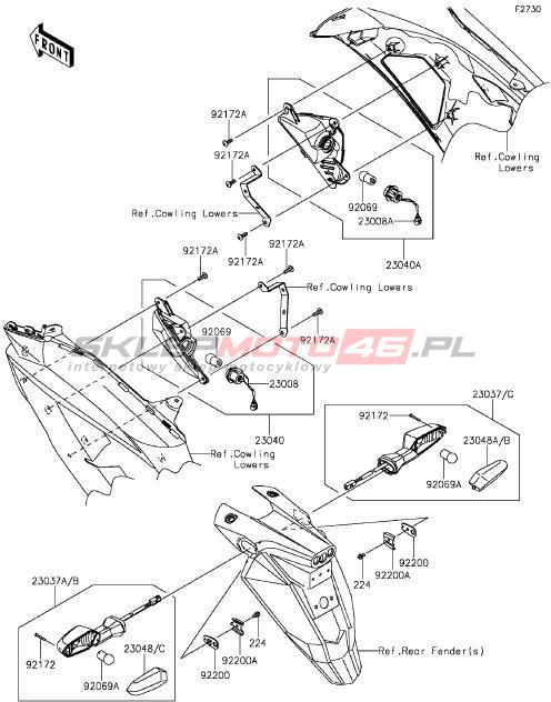 Wszystkie części widoczne na fiszkach to oryginalne części OEM Kawasaki. Możesz złożyć zamówienie telefonicznie, dzwoniąc pod numer +48 512-024-444, lub poprzez nasz sklep internetowy. Dostępność wybranych części zostanie automatycznie sprawdzona po dodaniu ich do koszyka.
