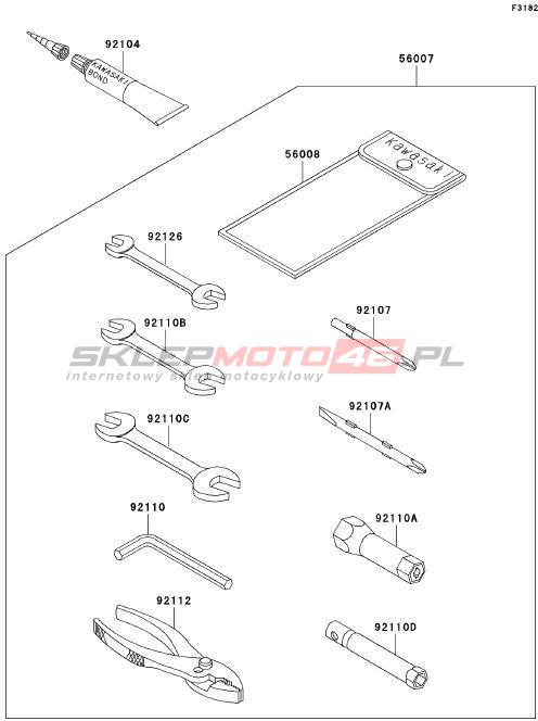 Wszystkie części widoczne na fiszkach to oryginalne części OEM Kawasaki. Możesz złożyć zamówienie telefonicznie, dzwoniąc pod numer +48 512-024-444, lub poprzez nasz sklep internetowy. Dostępność wybranych części zostanie automatycznie sprawdzona po dodaniu ich do koszyka.