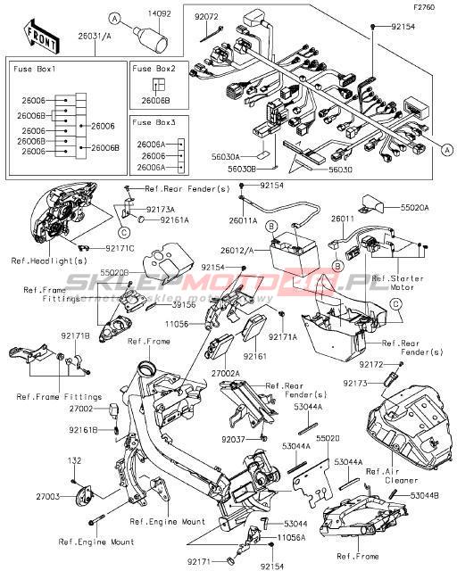 Wszystkie części widoczne na fiszkach to oryginalne części OEM Kawasaki. Możesz złożyć zamówienie telefonicznie, dzwoniąc pod numer +48 512-024-444, lub poprzez nasz sklep internetowy. Dostępność wybranych części zostanie automatycznie sprawdzona po dodaniu ich do koszyka.