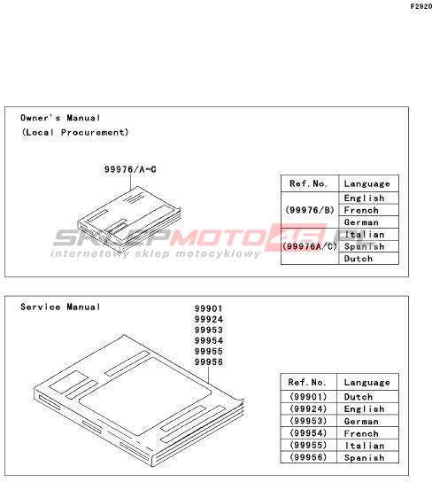 Wszystkie części widoczne na fiszkach to oryginalne części OEM Kawasaki.