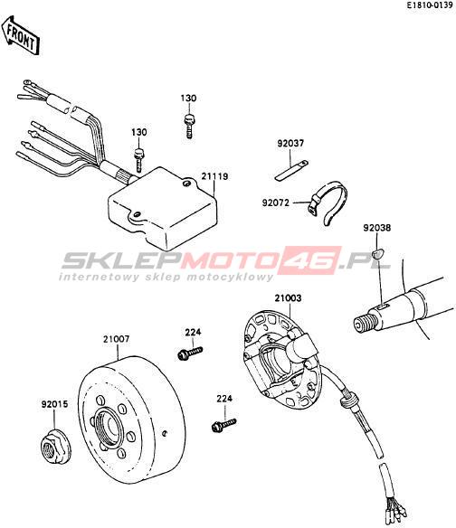 Wszystkie części widoczne na fiszkach to oryginalne części OEM Kawasaki. Możesz złożyć zamówienie telefonicznie, dzwoniąc pod numer +48 512-024-444, lub poprzez nasz sklep internetowy. Dostępność wybranych części zostanie automatycznie sprawdzona po dodaniu ich do koszyka.