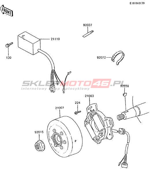 Wszystkie części widoczne na fiszkach to oryginalne części OEM Kawasaki. Możesz złożyć zamówienie telefonicznie, dzwoniąc pod numer +48 512-024-444, lub poprzez nasz sklep internetowy. Dostępność wybranych części zostanie automatycznie sprawdzona po dodaniu ich do koszyka.