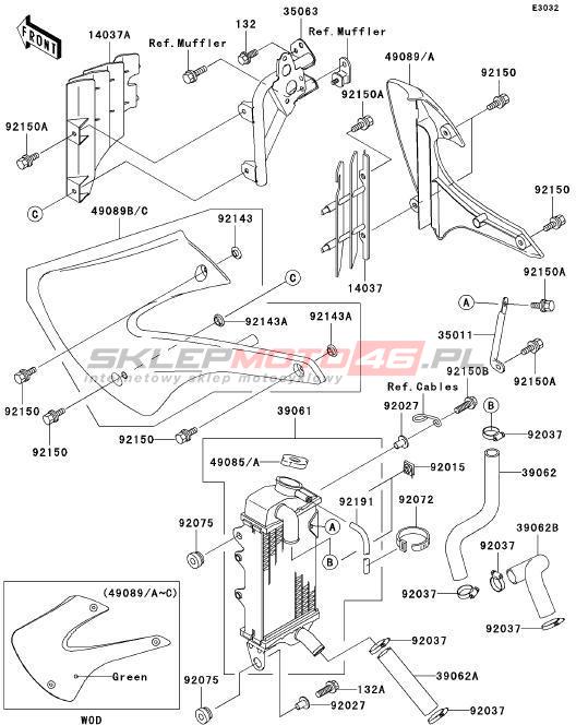 Wszystkie części widoczne na fiszkach to oryginalne części OEM Kawasaki. Możesz złożyć zamówienie telefonicznie, dzwoniąc pod numer +48 512-024-444, lub poprzez nasz sklep internetowy. Dostępność wybranych części zostanie automatycznie sprawdzona po dodaniu ich do koszyka.