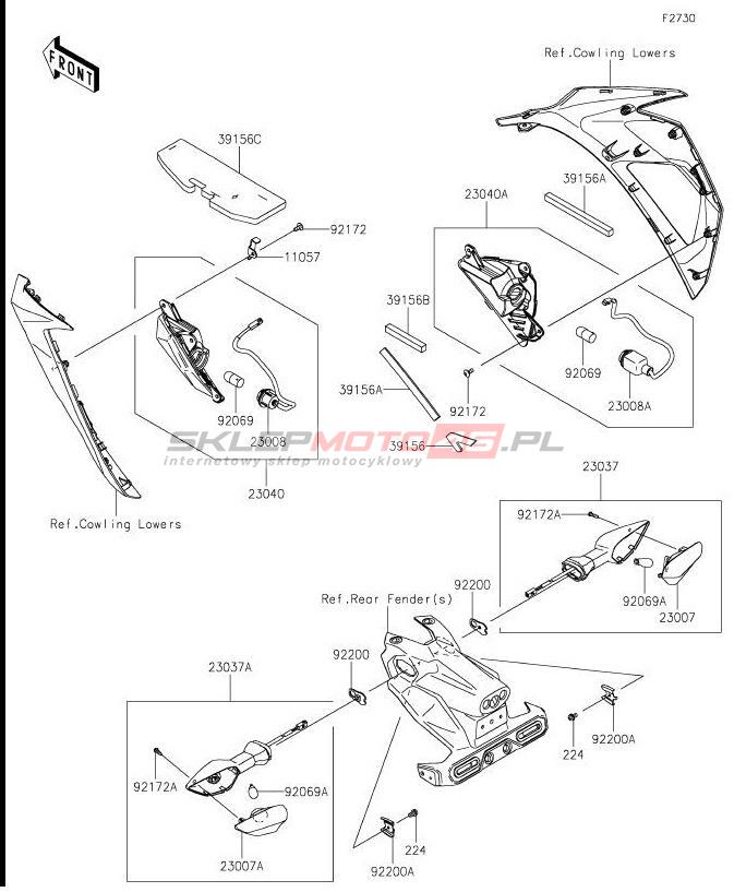 Wszystkie części widoczne na fiszkach to oryginalne części OEM Kawasaki. Możesz złożyć zamówienie telefonicznie, dzwoniąc pod numer +48 512-024-444, lub poprzez nasz sklep internetowy. Dostępność wybranych części zostanie automatycznie sprawdzona po dodaniu ich do koszyka.