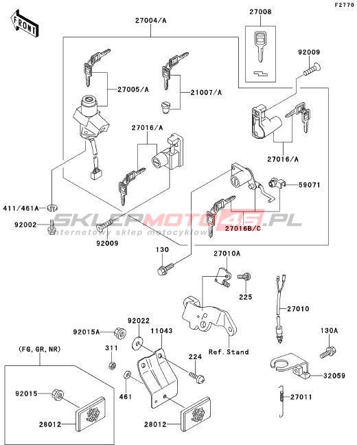 Wszystkie części widoczne na fiszkach to oryginalne części OEM Kawasaki. Możesz złożyć zamówienie telefonicznie, dzwoniąc pod numer +48 512-024-444, lub poprzez nasz sklep internetowy. Dostępność wybranych części zostanie automatycznie sprawdzona po dodaniu ich do koszyka.