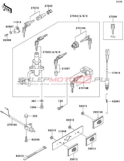 Wszystkie części widoczne na fiszkach to oryginalne części OEM Kawasaki. Możesz złożyć zamówienie telefonicznie, dzwoniąc pod numer +48 512-024-444, lub poprzez nasz sklep internetowy. Dostępność wybranych części zostanie automatycznie sprawdzona po dodaniu ich do koszyka.