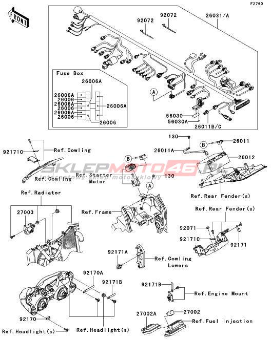 Wszystkie części widoczne na fiszkach to oryginalne części OEM Kawasaki. Możesz złożyć zamówienie telefonicznie, dzwoniąc pod numer +48 512-024-444, lub poprzez nasz sklep internetowy. Dostępność wybranych części zostanie automatycznie sprawdzona po dodaniu ich do koszyka.