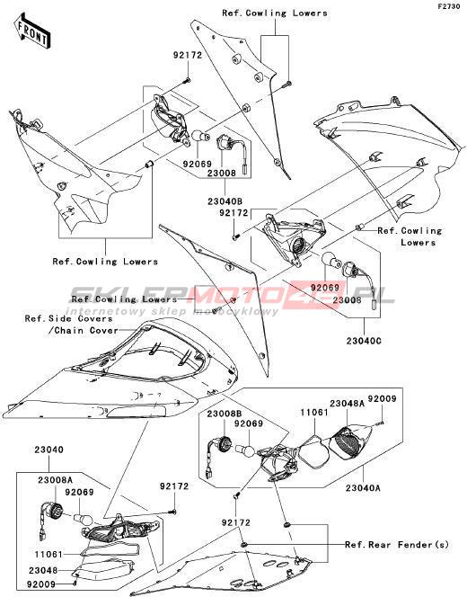 Wszystkie części widoczne na fiszkach to oryginalne części OEM Kawasaki. Możesz złożyć zamówienie telefonicznie, dzwoniąc pod numer +48 512-024-444, lub poprzez nasz sklep internetowy. Dostępność wybranych części zostanie automatycznie sprawdzona po dodaniu ich do koszyka.