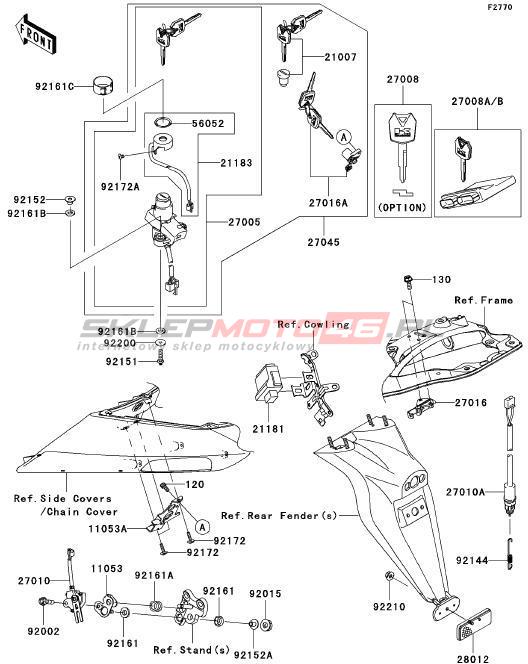 Wszystkie części widoczne na fiszkach to oryginalne części OEM Kawasaki. Możesz złożyć zamówienie telefonicznie, dzwoniąc pod numer +48 512-024-444, lub poprzez nasz sklep internetowy. Dostępność wybranych części zostanie automatycznie sprawdzona po dodaniu ich do koszyka.