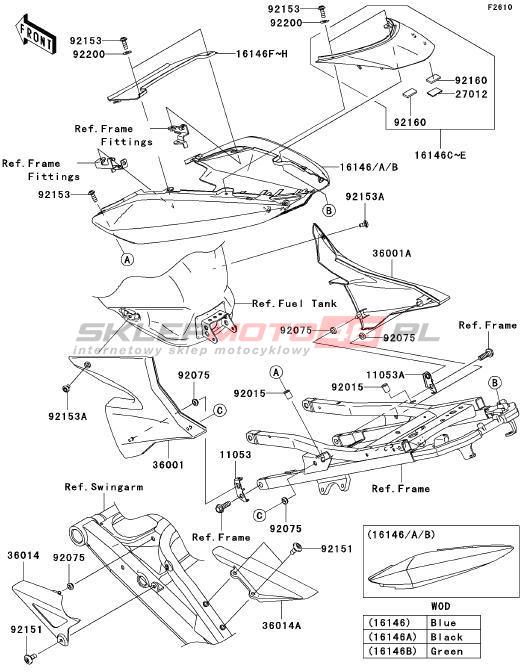 Wszystkie części widoczne na fiszkach to oryginalne części OEM Kawasaki. Możesz złożyć zamówienie telefonicznie, dzwoniąc pod numer +48 512-024-444, lub poprzez nasz sklep internetowy. Dostępność wybranych części zostanie automatycznie sprawdzona po dodaniu ich do koszyka.