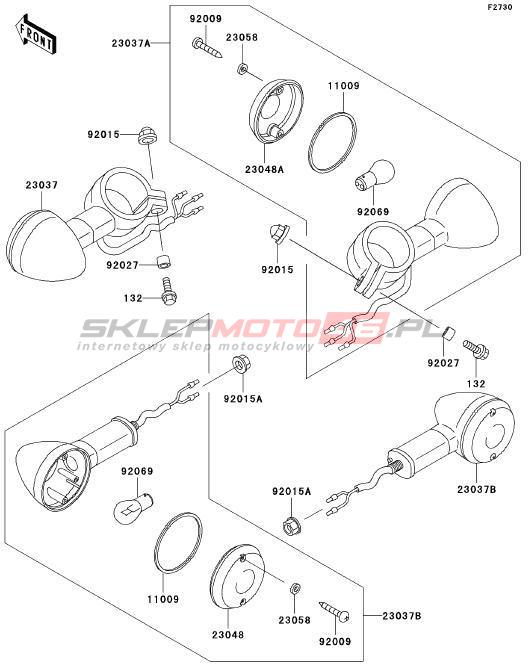 Wszystkie części widoczne na fiszkach to oryginalne części OEM Kawasaki.