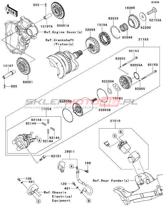 Wszystkie części widoczne na fiszkach to oryginalne części OEM Kawasaki. Możesz złożyć zamówienie telefonicznie, dzwoniąc pod numer +48 512-024-444, lub poprzez nasz sklep internetowy. Dostępność wybranych części zostanie automatycznie sprawdzona po dodaniu ich do koszyka.