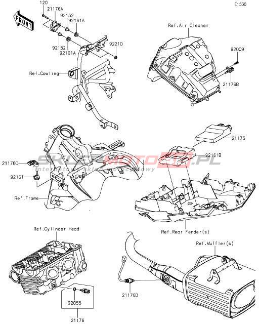 Wszystkie części widoczne na fiszkach to oryginalne części OEM Kawasaki. Możesz złożyć zamówienie telefonicznie, dzwoniąc pod numer +48 512-024-444, lub poprzez nasz sklep internetowy. Dostępność wybranych części zostanie automatycznie sprawdzona po dodaniu ich do koszyka.