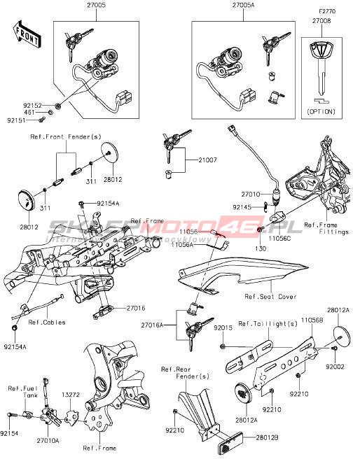 Wszystkie części widoczne na fiszkach to oryginalne części OEM Kawasaki. Możesz złożyć zamówienie telefonicznie, dzwoniąc pod numer +48 512-024-444, lub poprzez nasz sklep internetowy. Dostępność wybranych części zostanie automatycznie sprawdzona po dodaniu ich do koszyka.