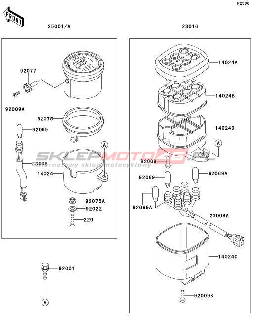 Wszystkie części widoczne na fiszkach to oryginalne części OEM Kawasaki. Możesz złożyć zamówienie telefonicznie, dzwoniąc pod numer +48 512-024-444, lub poprzez nasz sklep internetowy. Dostępność wybranych części zostanie automatycznie sprawdzona po dodaniu ich do koszyka.
