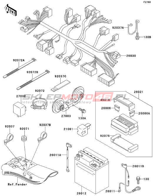 Wszystkie części widoczne na fiszkach to oryginalne części OEM Kawasaki. Możesz złożyć zamówienie telefonicznie, dzwoniąc pod numer +48 512-024-444, lub poprzez nasz sklep internetowy. Dostępność wybranych części zostanie automatycznie sprawdzona po dodaniu ich do koszyka.