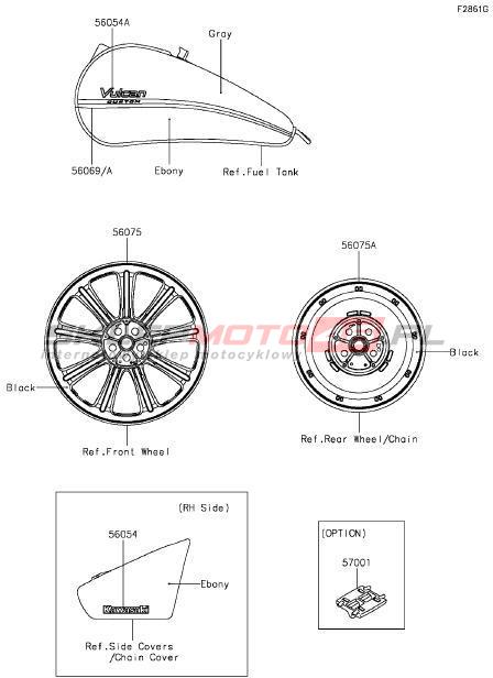 Wszystkie części widoczne na fiszkach to oryginalne części OEM Kawasaki.