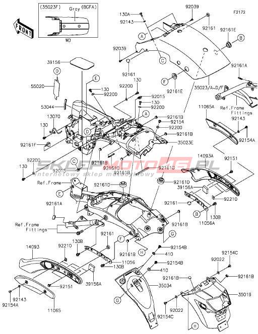 Wszystkie części widoczne na fiszkach to oryginalne części OEM Kawasaki. Możesz złożyć zamówienie telefonicznie, dzwoniąc pod numer +48 512-024-444, lub poprzez nasz sklep internetowy. Dostępność wybranych części zostanie automatycznie sprawdzona po dodaniu ich do koszyka.