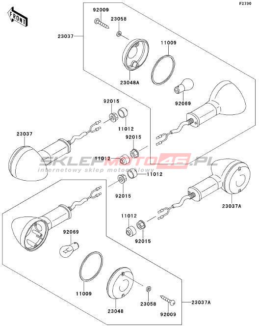 Wszystkie części widoczne na fiszkach to oryginalne części OEM Kawasaki. Możesz złożyć zamówienie telefonicznie, dzwoniąc pod numer +48 512-024-444, lub poprzez nasz sklep internetowy. Dostępność wybranych części zostanie automatycznie sprawdzona po dodaniu ich do koszyka.