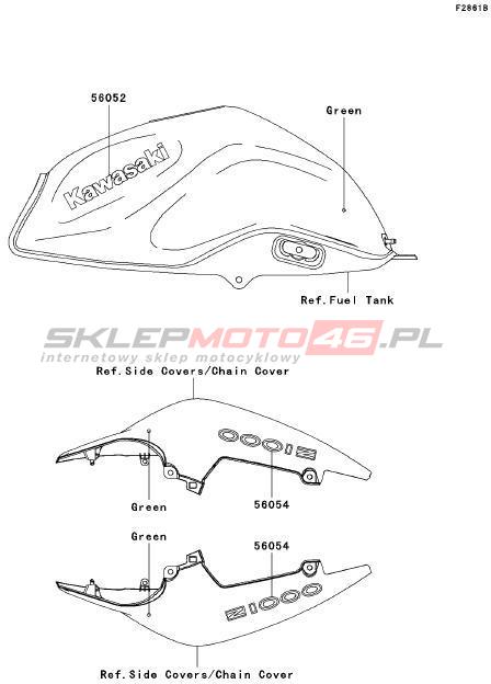 Wszystkie części widoczne na fiszkach to oryginalne części OEM Kawasaki. Możesz złożyć zamówienie telefonicznie, dzwoniąc pod numer +48 512-024-444, lub poprzez nasz sklep internetowy. Dostępność wybranych części zostanie automatycznie sprawdzona po dodaniu ich do koszyka.