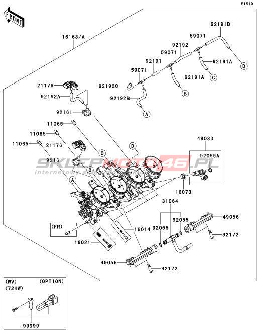 Wszystkie części widoczne na fiszkach to oryginalne części OEM Kawasaki. Możesz złożyć zamówienie telefonicznie, dzwoniąc pod numer +48 512-024-444, lub poprzez nasz sklep internetowy. Dostępność wybranych części zostanie automatycznie sprawdzona po dodaniu ich do koszyka.
