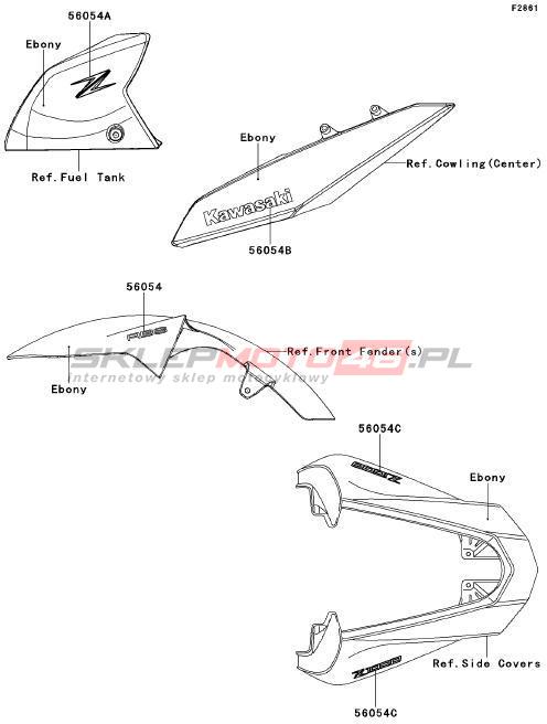 Wszystkie części widoczne na fiszkach to oryginalne części OEM Kawasaki.