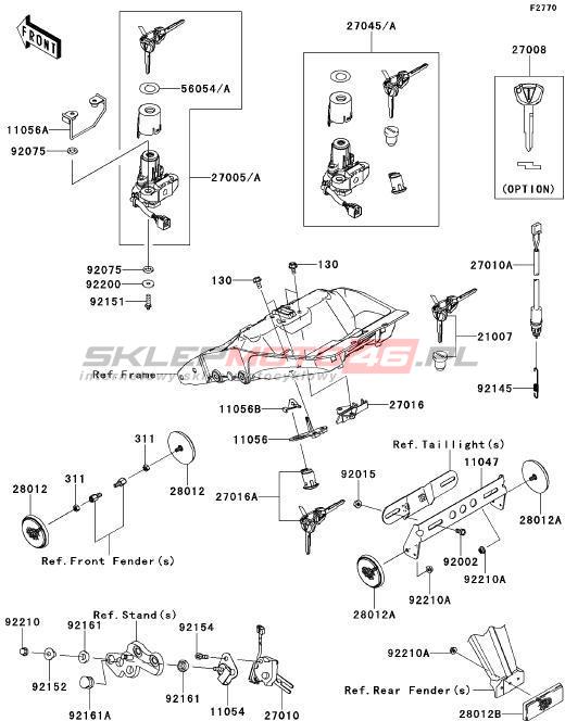 Wszystkie części widoczne na fiszkach to oryginalne części OEM Kawasaki. Możesz złożyć zamówienie telefonicznie, dzwoniąc pod numer +48 512-024-444, lub poprzez nasz sklep internetowy. Dostępność wybranych części zostanie automatycznie sprawdzona po dodaniu ich do koszyka.