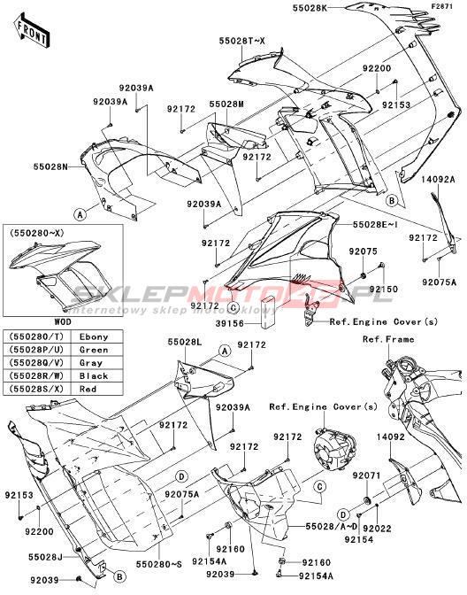 Wszystkie części widoczne na fiszkach to oryginalne części OEM Kawasaki. Możesz złożyć zamówienie telefonicznie, dzwoniąc pod numer +48 512-024-444, lub poprzez nasz sklep internetowy. Dostępność wybranych części zostanie automatycznie sprawdzona po dodaniu ich do koszyka.