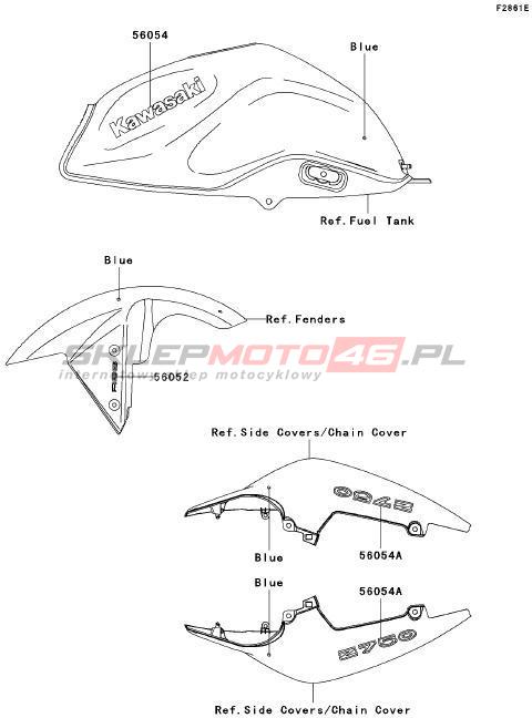 Wszystkie części widoczne na fiszkach to oryginalne części OEM Kawasaki.