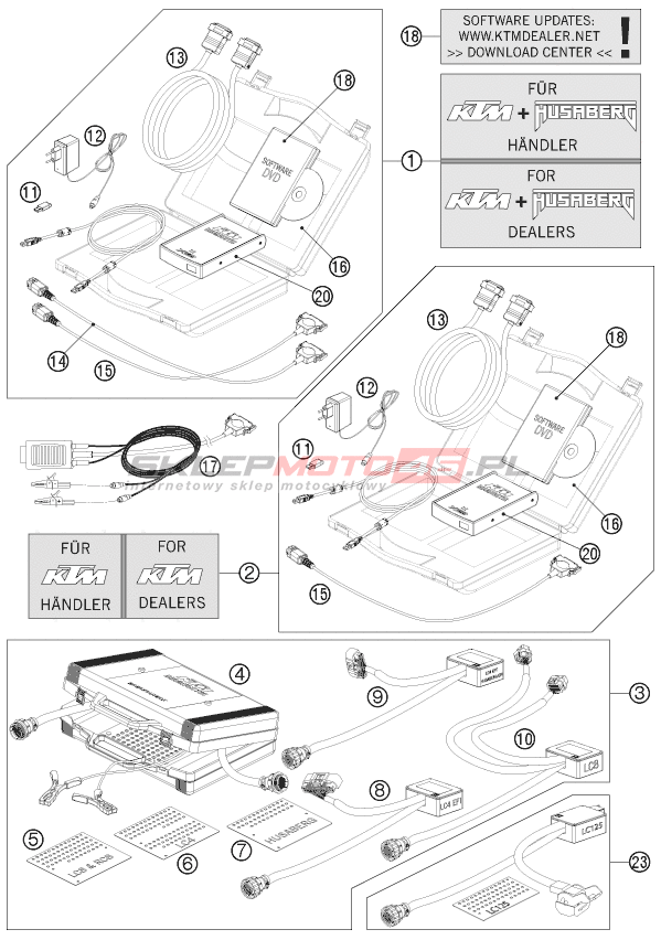 Wszystkie części widoczne na fiszkach to oryginalne części OEM KTM.