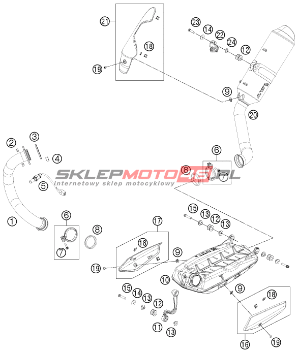 Wszystkie części widoczne na fiszkach to oryginalne części OEM KTM.