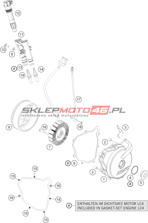 Wszystkie części widoczne na fiszkach to oryginalne części OEM KTM.