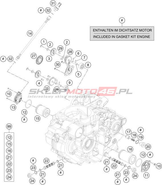 Wszystkie części widoczne na fiszkach to oryginalne części OEM KTM.