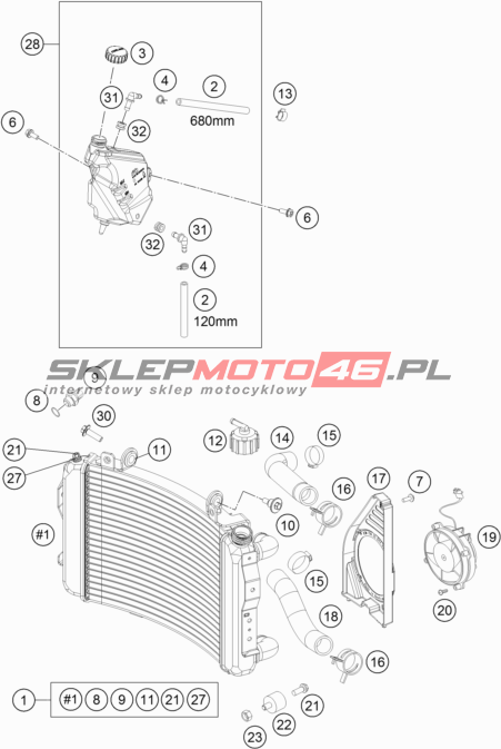 Wszystkie części widoczne na fiszkach to oryginalne części OEM KTM.