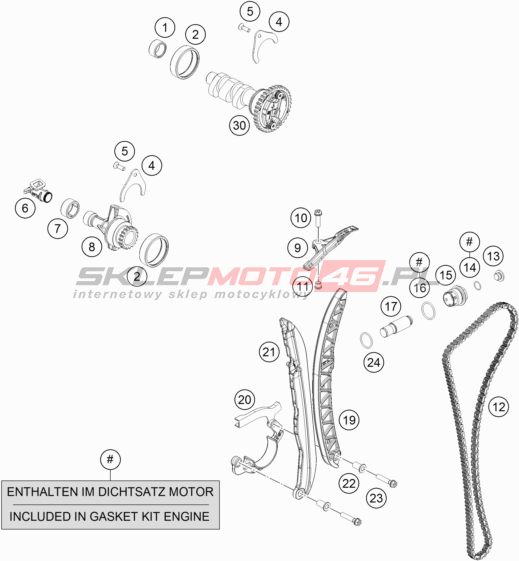 Wszystkie części widoczne na fiszkach to oryginalne części OEM KTM. Możesz złożyć zamówienie telefonicznie, dzwoniąc pod numer +48 512-024-444, lub poprzez nasz sklep internetowy. Dostępność wybranych części zostanie automatycznie sprawdzona po dodaniu ich do koszyka.