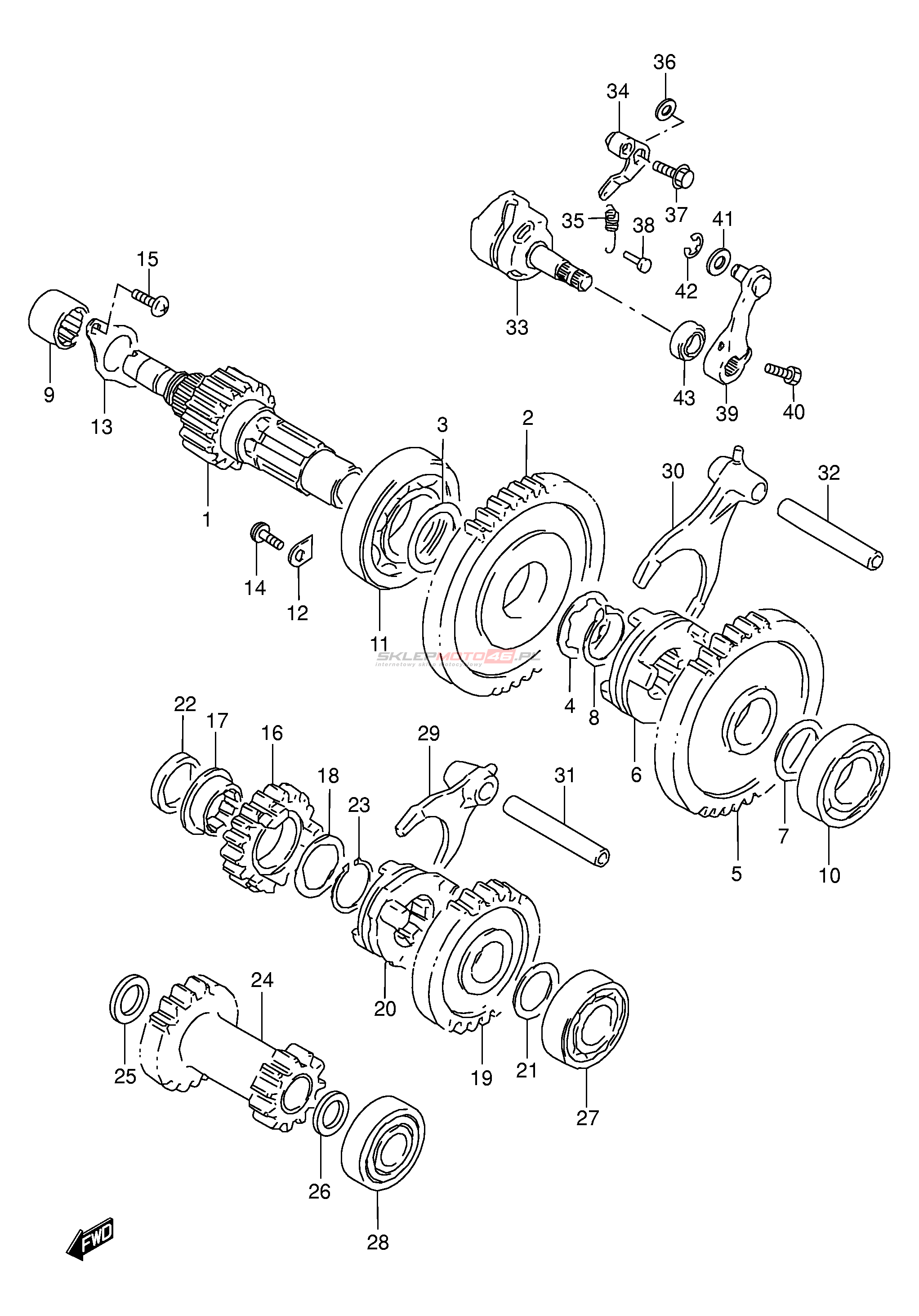 Wszystkie części widoczne na fiszkach to oryginalne części OEM Suzuki.