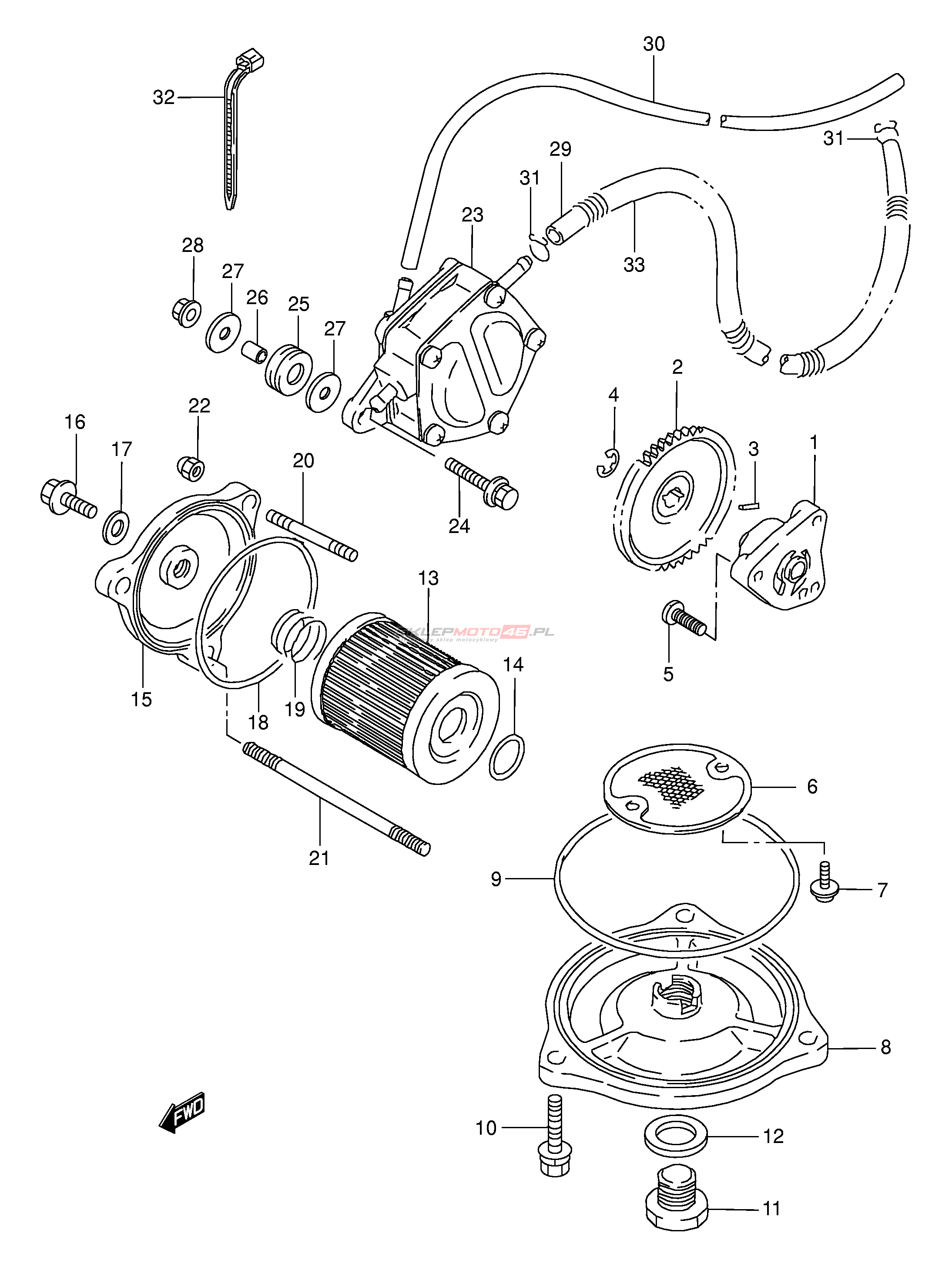 Wszystkie części widoczne na fiszkach to oryginalne części OEM Suzuki.