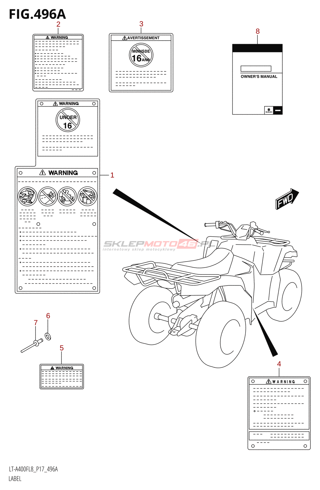 Wyszukiwarka części Suzuki LT-A400F L8 (P17) Body /​ Frame