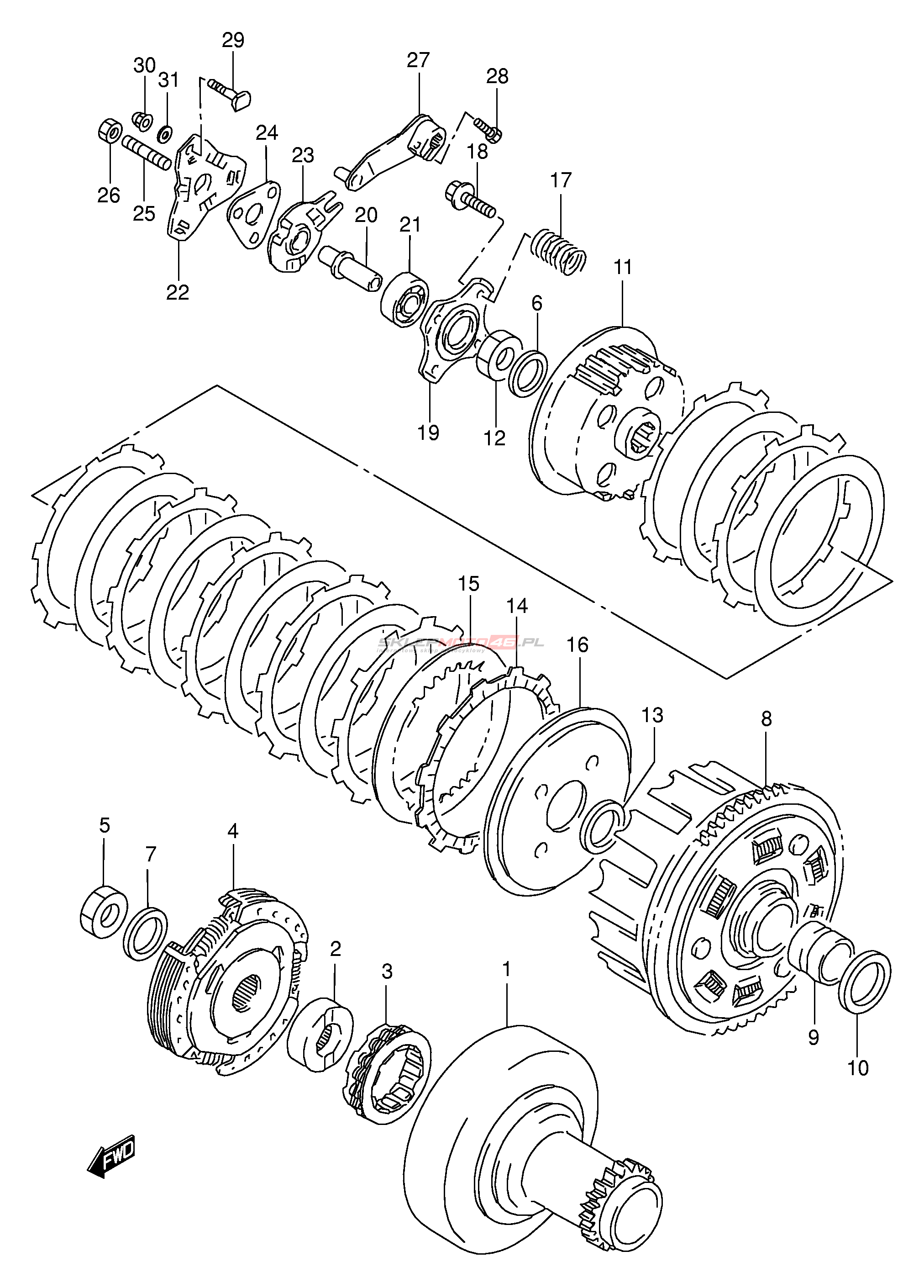 Wszystkie części widoczne na fiszkach to oryginalne części OEM Suzuki.