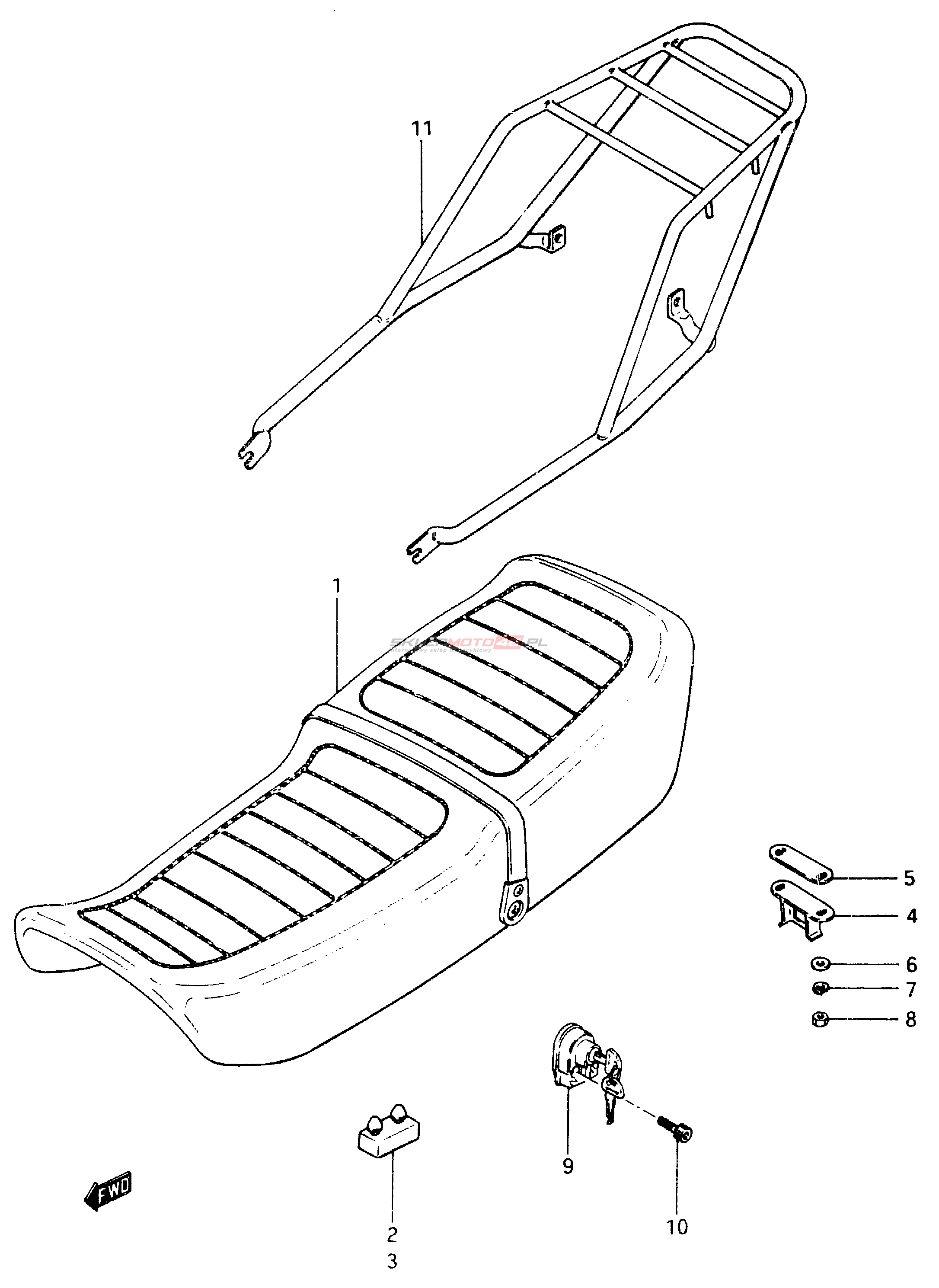 Wszystkie części widoczne na fiszkach to oryginalne części OEM Suzuki.