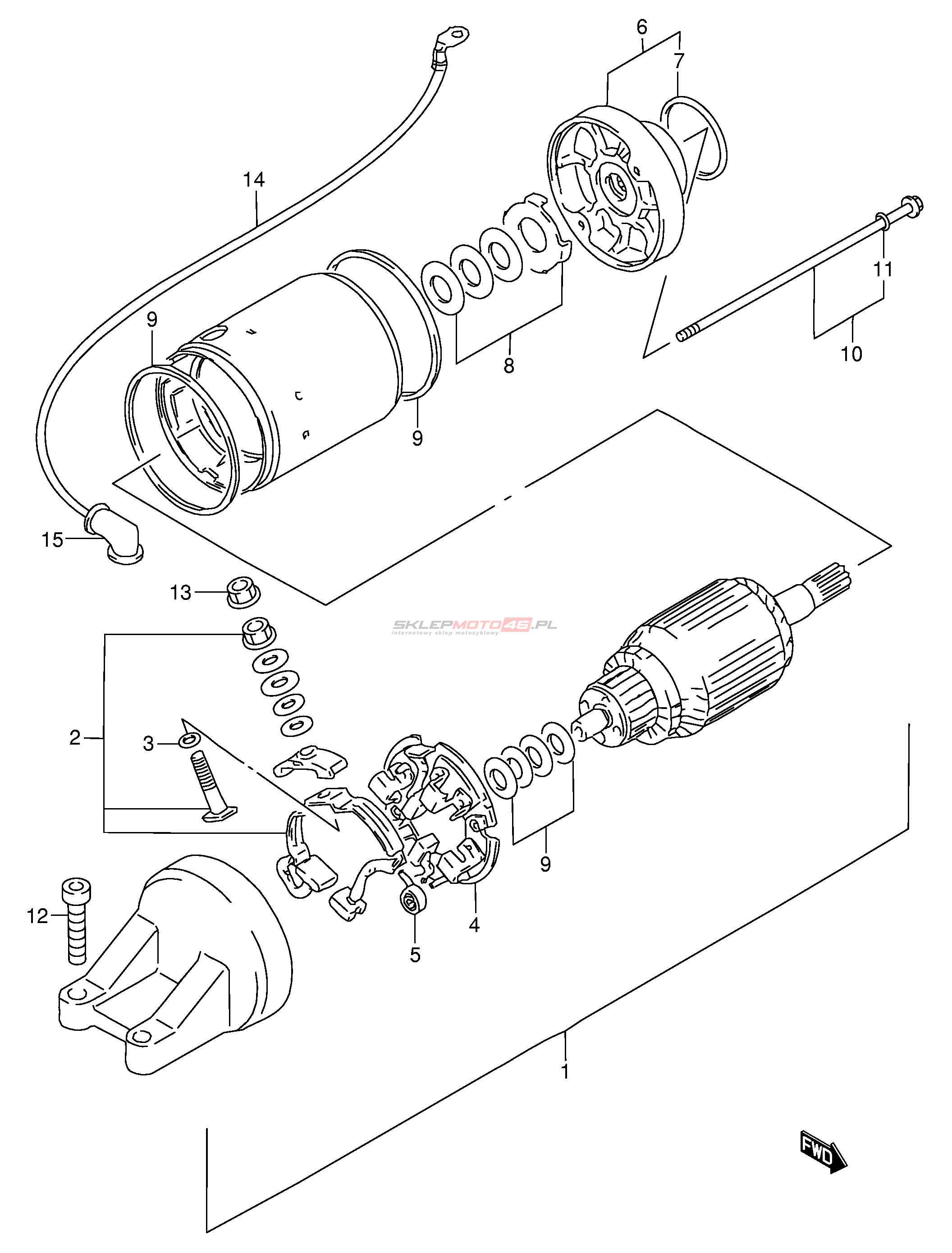 Wszystkie części widoczne na fiszkach to oryginalne części OEM Suzuki.