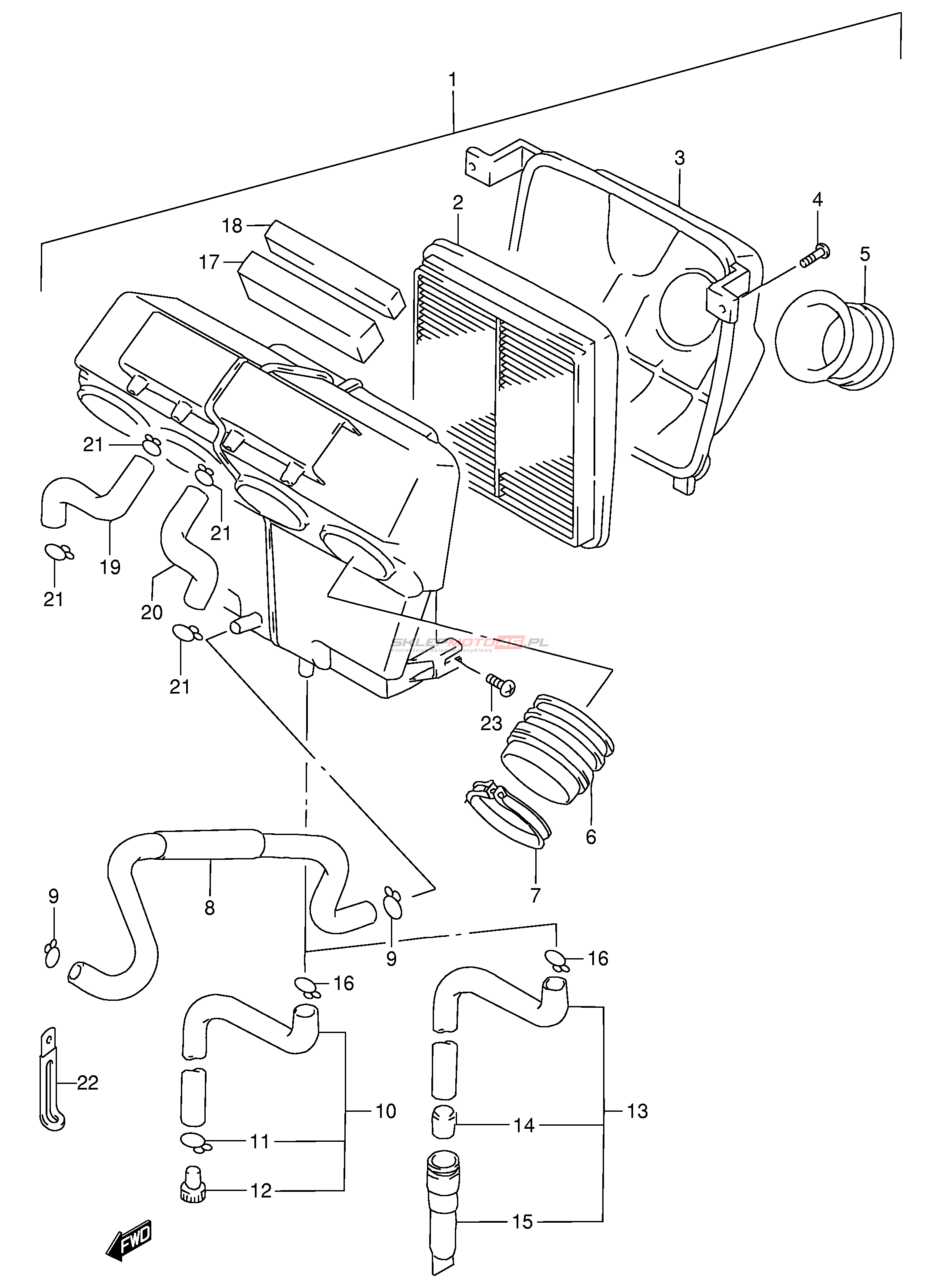 Wszystkie części widoczne na fiszkach to oryginalne części OEM Suzuki.