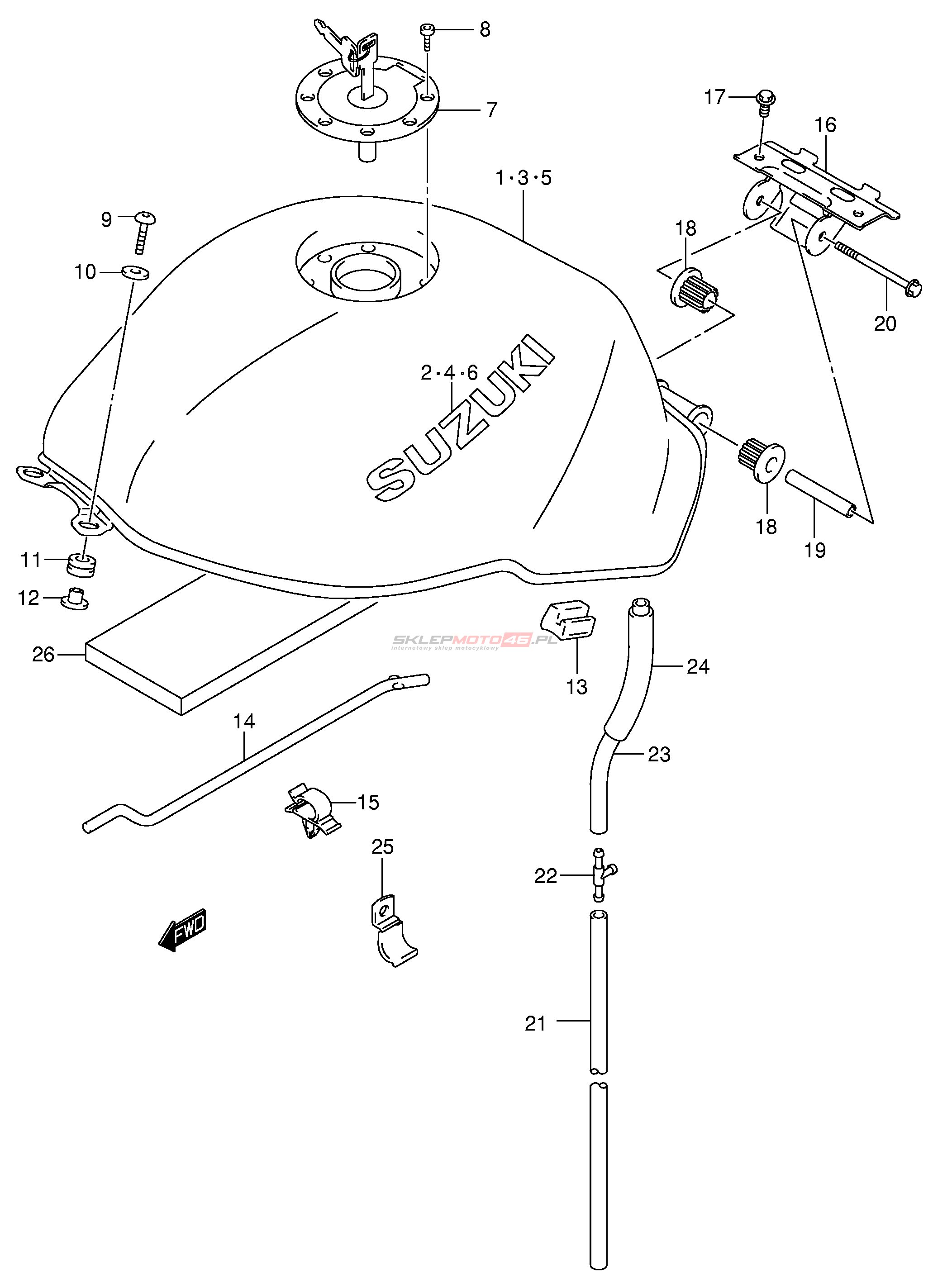 Wszystkie części widoczne na fiszkach to oryginalne części OEM Suzuki. Możesz złożyć zamówienie telefonicznie, dzwoniąc pod numer +48 512-024-444, lub poprzez nasz sklep internetowy. Dostępność wybranych części zostanie automatycznie sprawdzona po dodaniu ich do koszyka.