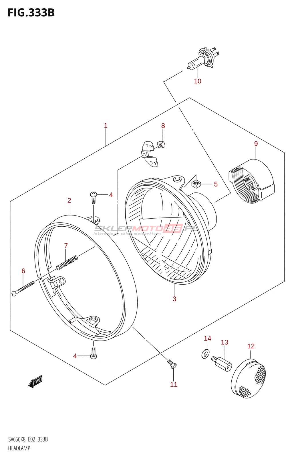 333B - HEADLAMP ((SV650,SV650A):K8:E24)