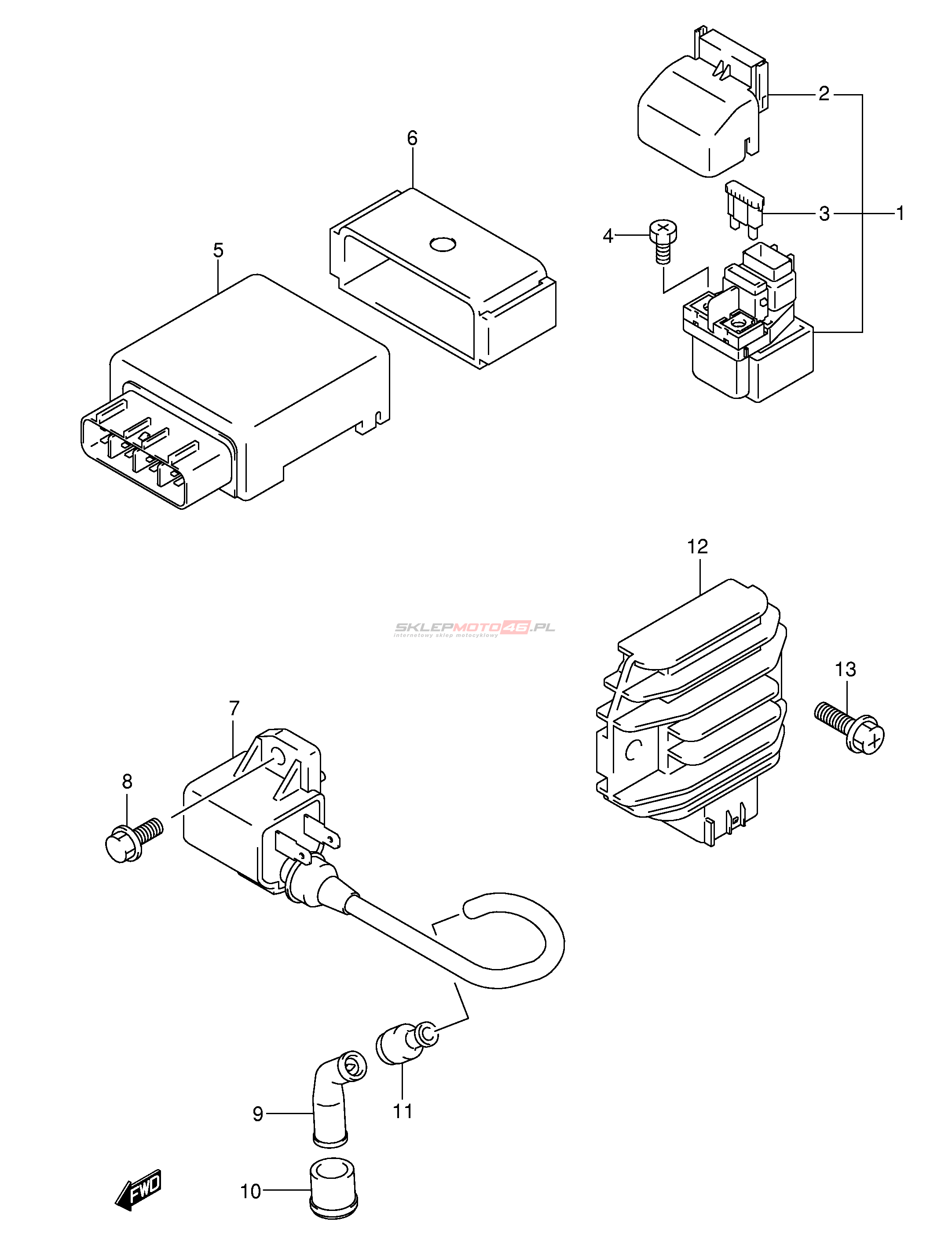 Wszystkie części widoczne na fiszkach to oryginalne części OEM Suzuki.